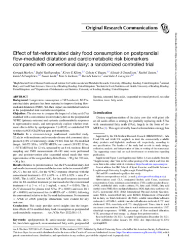 Effect of fat reformulated dairy food consumption on postprandial flow-mediated dilatation and cardiometabolic risk biomarkers compared with conventional dairy: a randomized, controlled trial.