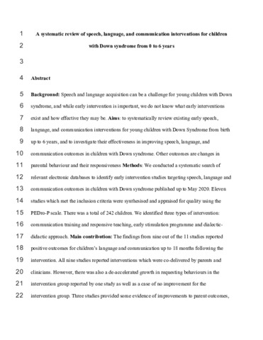 A systematic review of speech, language, and communication interventions for children with Down syndrome from 0 to 6 years