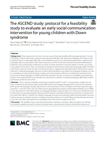 The ASCEND study: protocol for a feasibility study to evaluate an early social communication intervention for young children with Down syndrome.