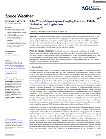 Lockwood, M. orcid id iconORCID: https://orcid.org/0000-0002-7397-2172 (2022) Solar wind - magnetosphere coupling functions: pitfalls, limitations and applications. Space Weather, 20 (2). e2021SW002989. ISSN 1542-7390 doi: 10.1029/2021SW002989