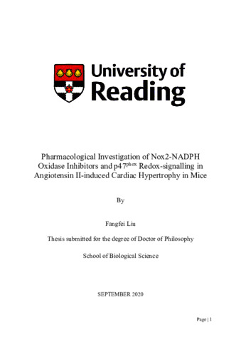 Liu, F. (2021) Pharmacological Investigation of Nox2-NADPH Oxidase Inhibitors and p47phox Redox-signalling in Angiotensin II-induced Cardiac Hypertrophy in Mice. PhD thesis, University of Reading. doi: 10.48683/1926.00102392