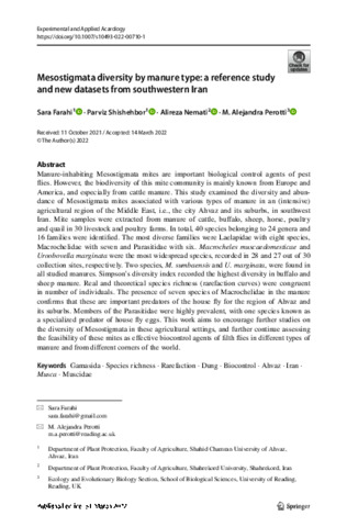 Mesostigmata diversity by manure type. A reference study and new datasets from southwestern Iran.
