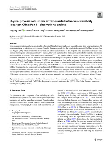 Tian, F., Li, S., Dong, B. orcid id iconORCID: https://orcid.org/0000-0003-0809-7911, Klingaman, N. P. orcid id iconORCID: https://orcid.org/0000-0002-2927-9303, Freychet, N. and Sparrow, S. (2022) Physical processes of summer extreme rainfall interannual variability in eastern China. part I, observational analysis. Climate Dynamics, 59. pp. 201-217. ISSN 0930-7575 doi: 10.1007/s00382-021-06123-x
