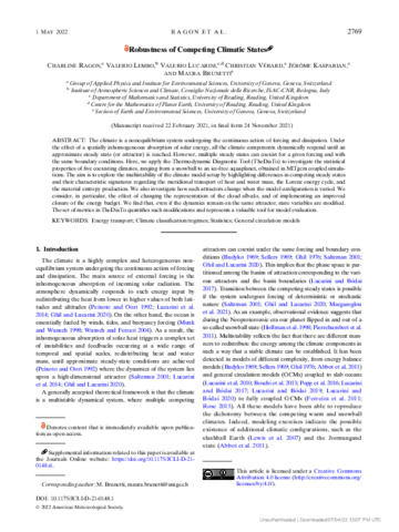 Ragon, C., Lembo, V., Lucarini, V. orcid id iconORCID: https://orcid.org/0000-0001-9392-1471, Verard, C., Kasparian, J. and Brunetti, M. (2022) Robustness of competing climatic states. Journal of Climate, 35 (9). pp. 2769-2784. ISSN 1520-0442 doi: 10.1175/JCLI-D-21-0148.1
