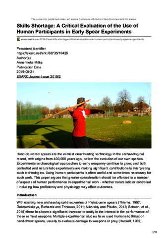 Milks, A. orcid id iconORCID: https://orcid.org/0000-0003-0779-6200 (2019) Skills shortage: a critical evaluation of the use of human participants in early spear experiments. EXARC Journal, 2019 (2). pp. 1-11. ISSN 2212-8956 doi: https://exarc.net/ark:/88735/10426