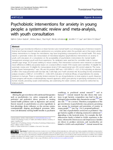 Psychobiotic interventions for anxiety in young people: a systematic review and meta-analysis, with youth consultation.