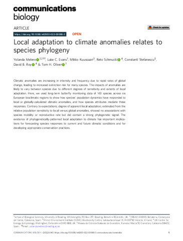 Local adaptation to climate anomalies relates to species phylogeny.