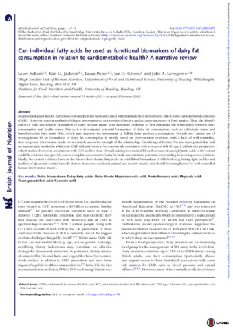 Can individual fatty acids be used as functional biomarkers of dairy fat consumption in relation to cardiometabolic health? A narrative review.