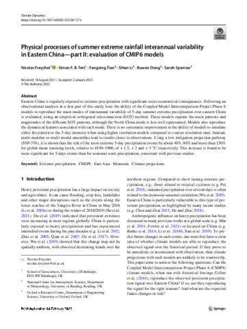 Freychet, N., Tett, S. F. B., Tian, F., Li, S., Dong, B. ORCID: https://orcid.org/0000-0003-0809-7911 and Sparrow, S.