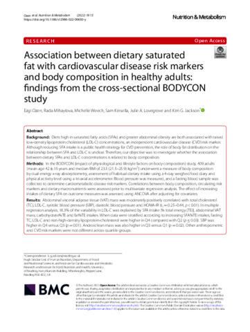 Association between dietary saturated fat with cardiovascular disease risk markers and body composition in healthy adults- findings from the cross-sectional BODYCON study.