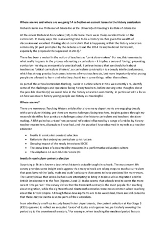 Where are we and where are we going? A reflection on current issues in the history curriculum.