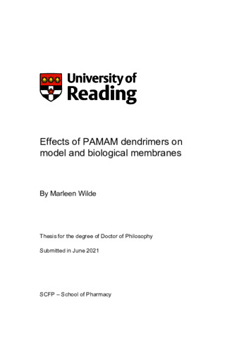 Wilde, M. (2021) Effects of PAMAM dendrimers on model and biological membranes. PhD thesis, University of Reading. doi: 10.48683/1926.00103264