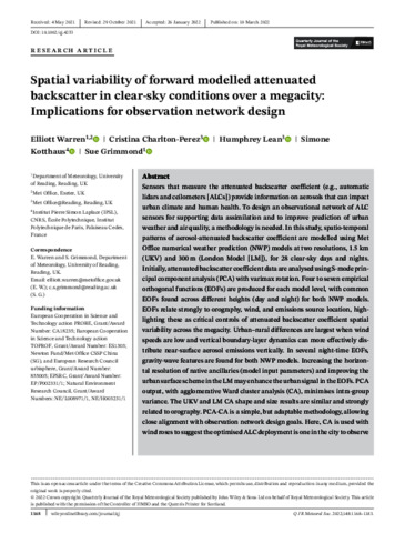 Spatial variability of forward modelled attenuated backscatter in clear‐sky conditions over a megacity: implications for observation network design.