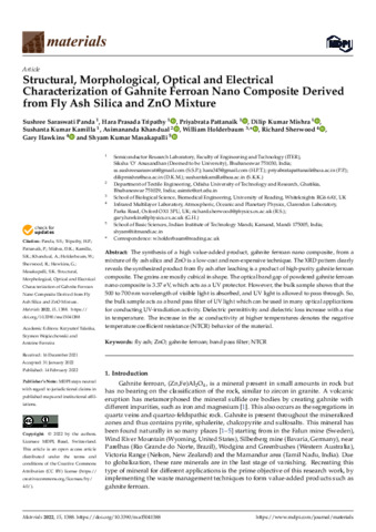 Structural, morphological, optical and electrical characterization of gahnite ferroan nano composite derived from fly ash silica and ZnO Mixture.