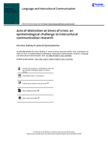 Acts of distinction at times of crisis: an epistemological challenge to intercultural communication research.