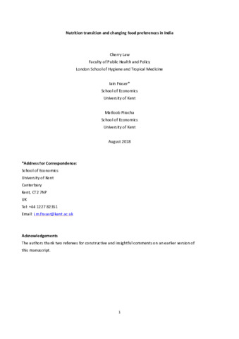 Nutrition transition and changing food preferences in India.