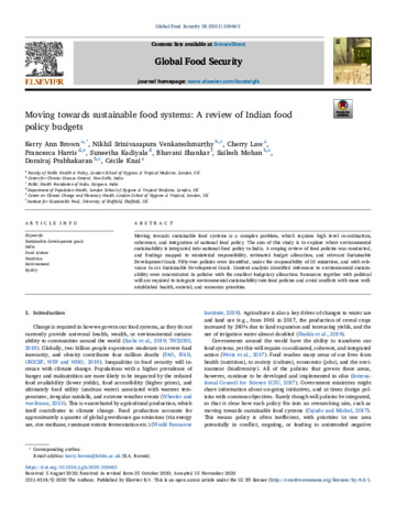 Moving towards sustainable food systems: a review of Indian food policy budgets.