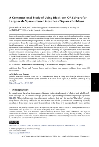 A computational study of using black-box QR solvers for large-scale sparse-dense linear least squares problems.