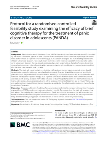 Protocol for a randomised controlled feasibility study examining the efficacy of brief cognitive therapy for the treatment of panic disorder in adolescents (PANDA).
