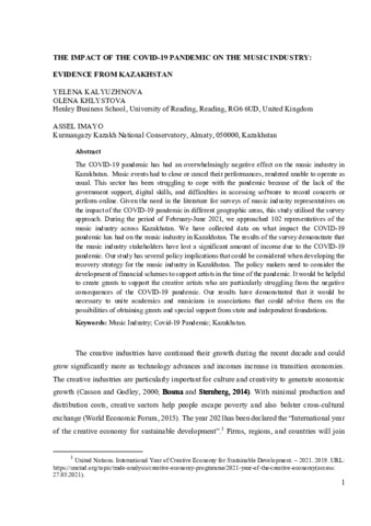 The impact of the COVID-19 pandemic on the music industry: evidence from Kazakhstan.