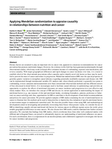 Applying Mendelian randomization to appraise causality in relationships between nutrition and cancer.