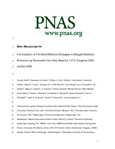 Arndt, C., Hristov, A. N., Price, W. J., McClelland, S. C., Pelaez, A. M., Cueva, S. F., Oh, J., Dijkstra, J., Bannink, A., Bayat, A. R., Crompton, L. A., Eugène, M. A., Enahoro, D., Kebreab, E., Kreuzer, M., McGee, M., Martin, C., Newbold, C. J., Reynolds, C. ORCID: https://orcid.org/0000-0002-4152-1190, Schwarm, A., Shingfield, K. J., Veneman, J. B., Yáñez-Ruiz, D. R. and Yu, Z.