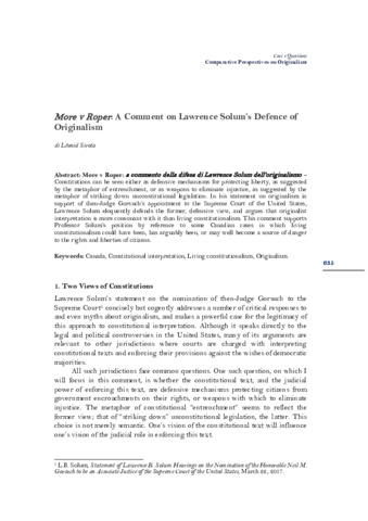 Sirota, L. (2017) More v Roper: a comment on Lawrence Solum’s defence of originalism. DPCE Online, 31 (3). ISSN 2037-6677