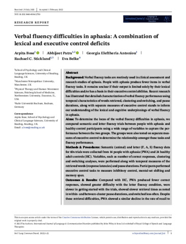 Verbal fluency difficulties in aphasia: a combination of lexical and executive control deficits.