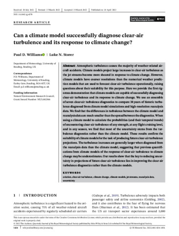 Can a climate model successfully diagnose clear‐air turbulence and its response to climate change?