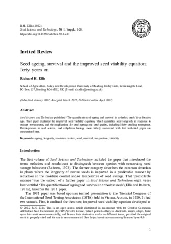• Ellis, R.H. and Roberts, E.H. (1981a). The quantification of ageing and survival in orthodox seeds. Seed Science and Technology, 9, 373-409.