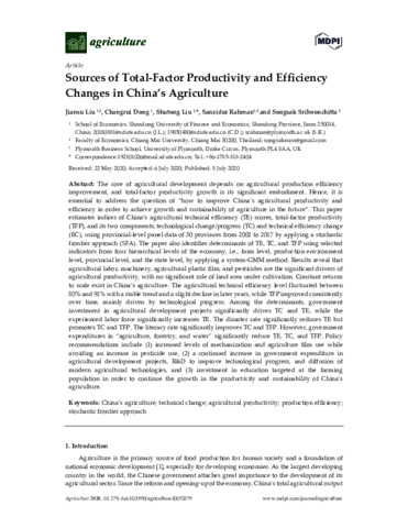 Sources of total-factor productivity and efficiency changes in China’s agriculture.