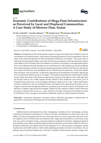 Economic contributions of mega-dam infrastructure as perceived by local and displaced communities: a case study of Merowe Dam, Sudan.