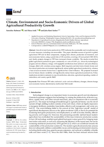 Climate, environment and socio-economic drivers of global agricultural productivity growth.