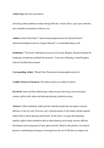 Advancing urban metabolism studies through GIS data: resource flows, open space networks, and vulnerable communities in Mexico City.