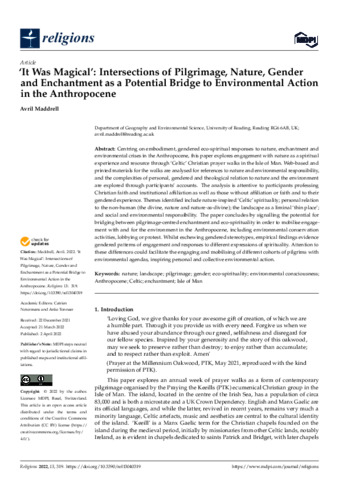 ‘It was magical’: intersections of pilgrimage, nature, gender and enchantment as a potential bridge to environmental action in the Anthropocene.