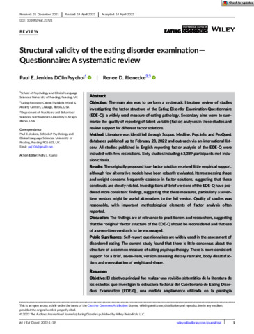 Structural validity of the Eating Disorder Examination – Questionnaire (EDE-Q): a systematic review.