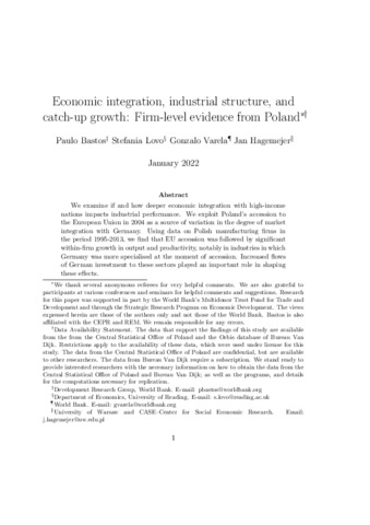 Economic integration, industrial structure, and catch-up growth: firm-level evidence from Poland.