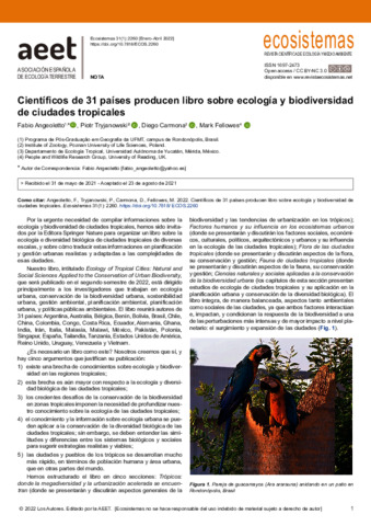 Científicos de 31 países producen libro sobre ecología y biodiversidad de ciudades tropicales.
