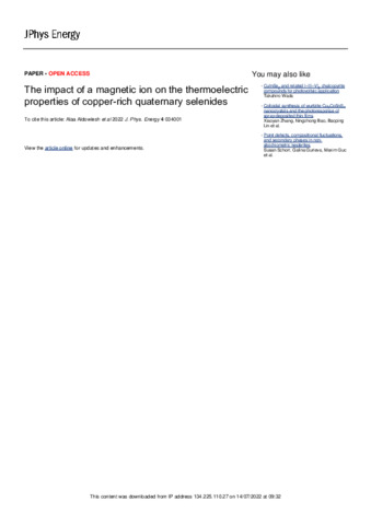 The impact of a magnetic ion on the thermoelectric properties of copper-rich quaternary selenides.