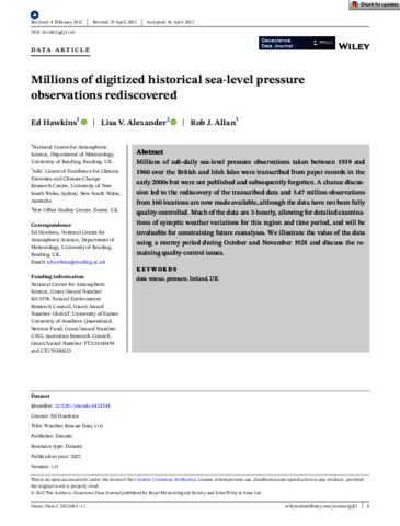 Millions of digitized historical sea-level pressure observations rediscovered.