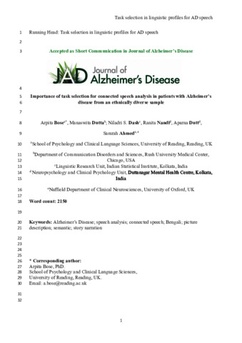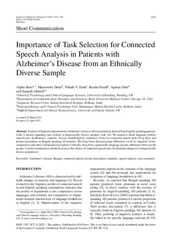 Importance of task selection for connected speech analysis in patients with Alzheimer’s disease from an ethnically diverse sample.