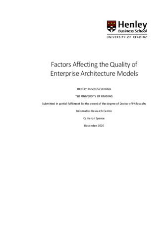 Spence, C. (2021) Factors Affecting the Quality of Enterprise Architecture Models. PhD thesis, University of Reading. doi: 10.48683/1926.00105086