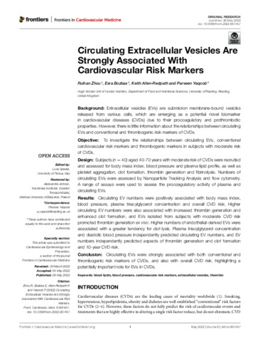 Circulating extracellular vesicles are strongly associated with cardiovascular risk markers.