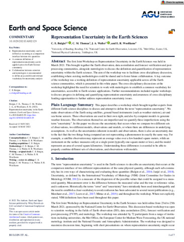 Bulgin, C. E. orcid id iconORCID: https://orcid.org/0000-0003-4368-7386, Thomas, C. M., Waller, J. A. and Woolliams, E. R. (2022) Representation uncertainty in the earth sciences. Earth and Space Science, 9 (6). e2021EA002129. ISSN 2333-5084 doi: 10.1029/2021EA002129