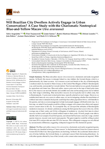 Will Brazilian city dwellers actively engage in urban conservation? A case study with the charismatic neotropical Blue-and-yellow macaw (Ara ararauna).