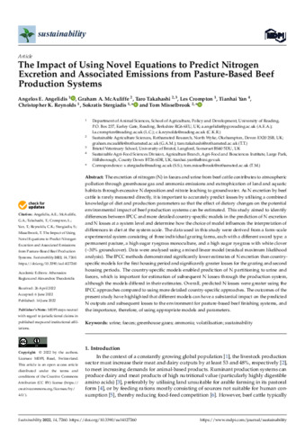 The impact of using novel equations to predict nitrogen excretion and associated emissions from pasture-based beef production systems.