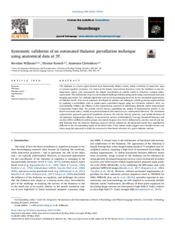 Systematic validation of an automated thalamic parcellation technique using anatomical data at 3T.
