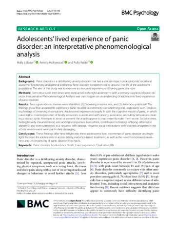 Adolescents’ lived experience of panic disorder: an interpretative phenomenological analysis.