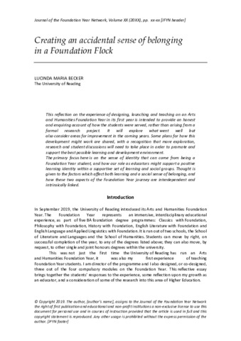 A case study of a year's teaching on a newly created Arts and Humanities Foundation Year, leading to a consideration of how foundation students might identify themselves both individually and as a cohort.