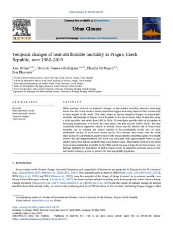 Urban, A., Fonseca-Rodríguez, O., Di Napoli, C. and Plavcová, E. (2022) Temporal changes of heat-attributable mortality in Prague, Czech Republic, over 1982–2019. Urban Climate, 44. 101197. ISSN 2212-0955 doi: 10.1016/j.uclim.2022.101197